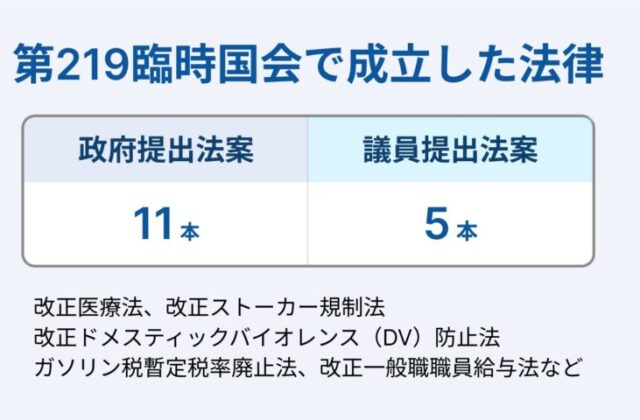 12月17日に閉会した第219臨時国会で成立した法律の一覧を、政策ニュース.jpに掲載しました。 ・...