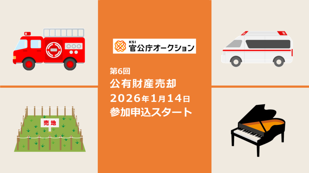 KSI官公庁オークション、2025年度第6回公有財産売却の参加申し込みを開始