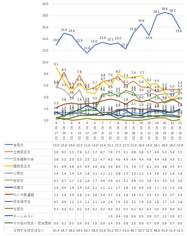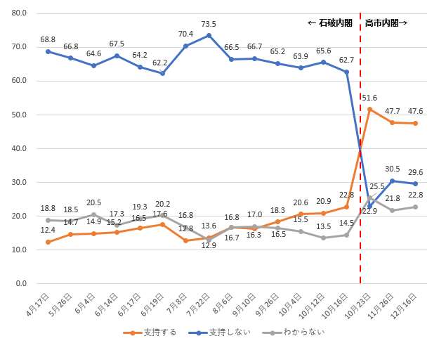 | Q10 あなたは高市内閣を支持しますか、支持しませんか。(内閣支持率の推移) |