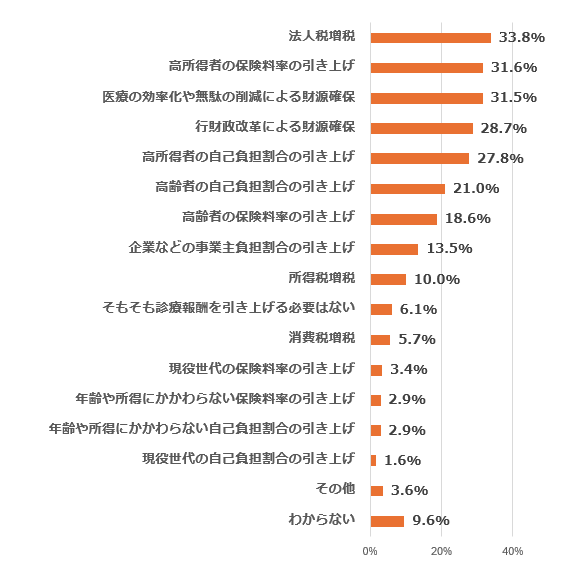 | Q7 仮に診療報酬を引き上げる場合、その財源はどのように確保するのがよいと思いますか。(複数回答可) |