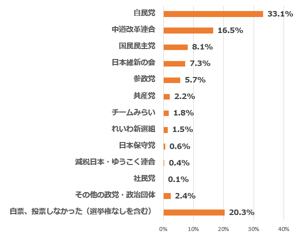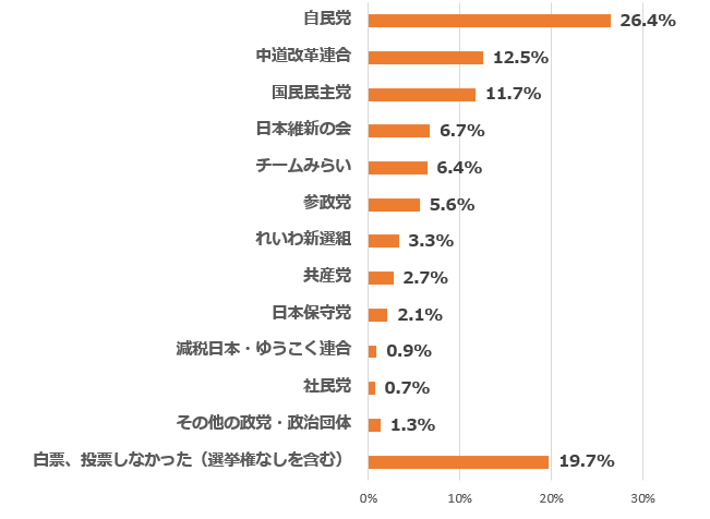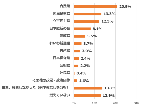 | Q13 衆院選の比例代表で、あなたはどの政党に投票しましたか。 |