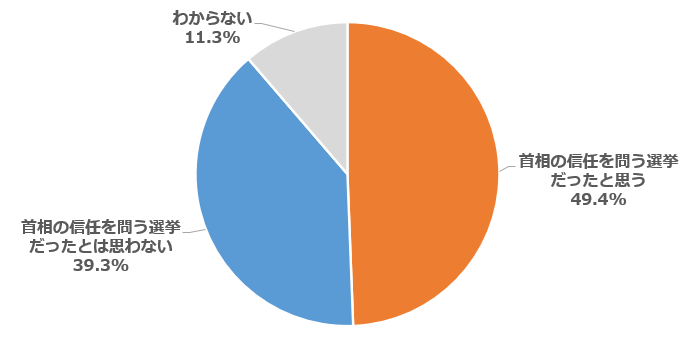 | Q5 高市早苗首相は、1月19日の記者会見で、衆院解散を決断した理由について「高市早苗が、内閣総理大臣で良いのかどうか、今、主権者たる国民の皆様に決めていただく」と述べました。あなたは、今回の衆院選は高市首相の信任を問う選挙だったと思いますか、思いませんか。 |