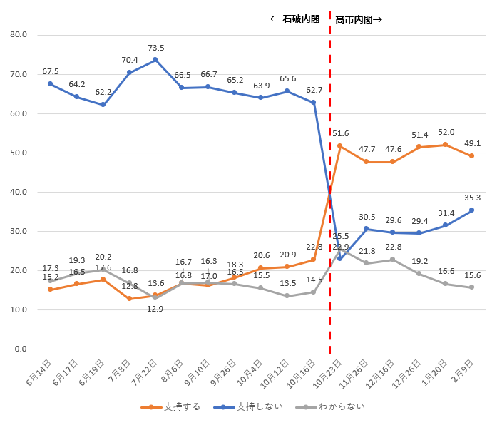 | Q17 あなたは高市内閣を支持しますか、支持しませんか。(内閣支持率の推移) |