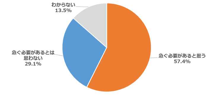 | Q3 衆院選では、大雪の影響により、一部の投票所で投票の締切時刻を早めるなどの対応が行われました。また、有権者が投票所へ向かう際の安全確保への懸念や、投票意欲が低下するおそれがあるとの指摘もあります。こうした状況を踏まえ、あなたは選挙において自宅などで投票できるようにインターネット投票の導入を急ぐ必要があると思いますか、思いませんか。 |