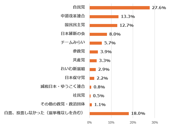 | Q2 衆院選の比例代表で、あなたはどの政党に投票しましたか。 |