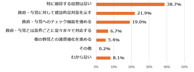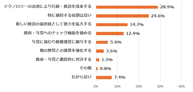 | Q5 あなたは、小川新代表が率いる中道改革連合に、今後どのような役割を最も期待しますか。あなたの考えに最も近いものを1つ選んでください。 |
