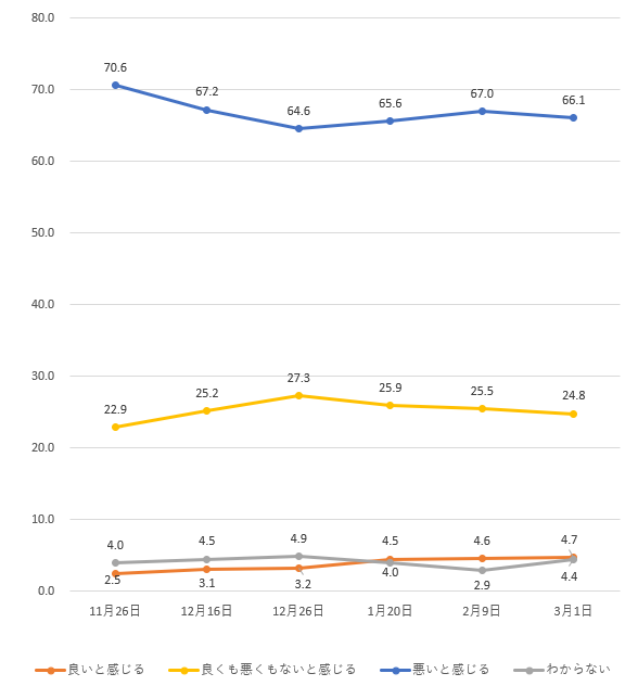 | Q16 現在の日本の景気について、あなたはどのように感じていますか。(景況感の推移) |