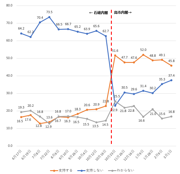 | Q17 あなたは高市内閣を支持しますか、支持しませんか。(内閣支持率の推移) |